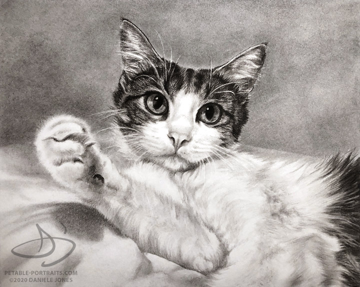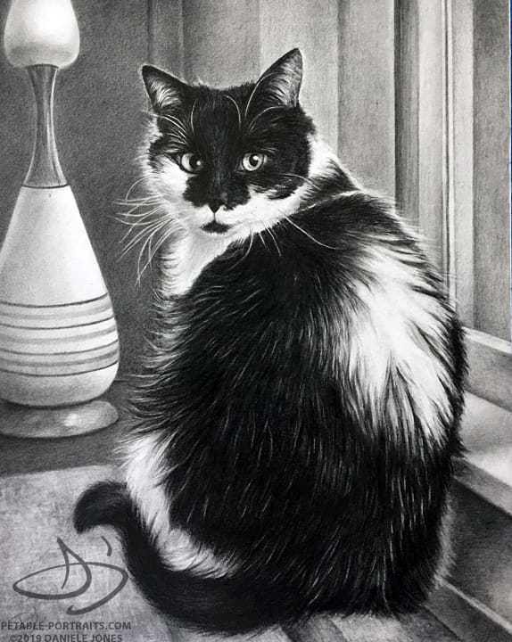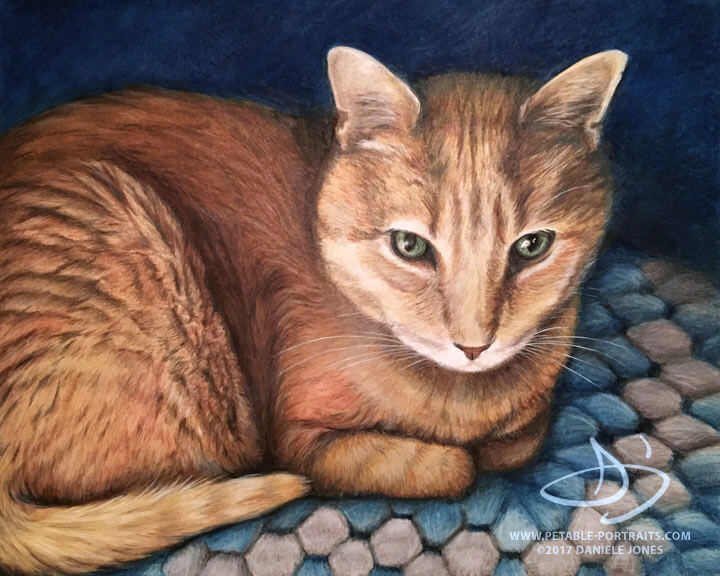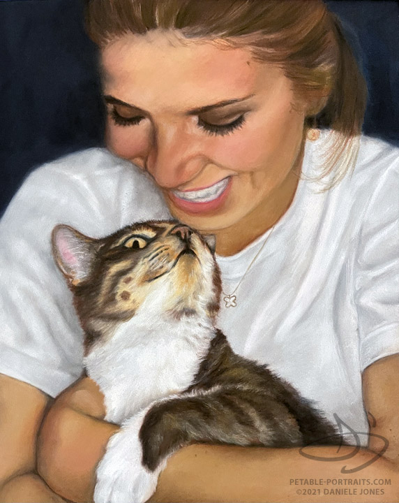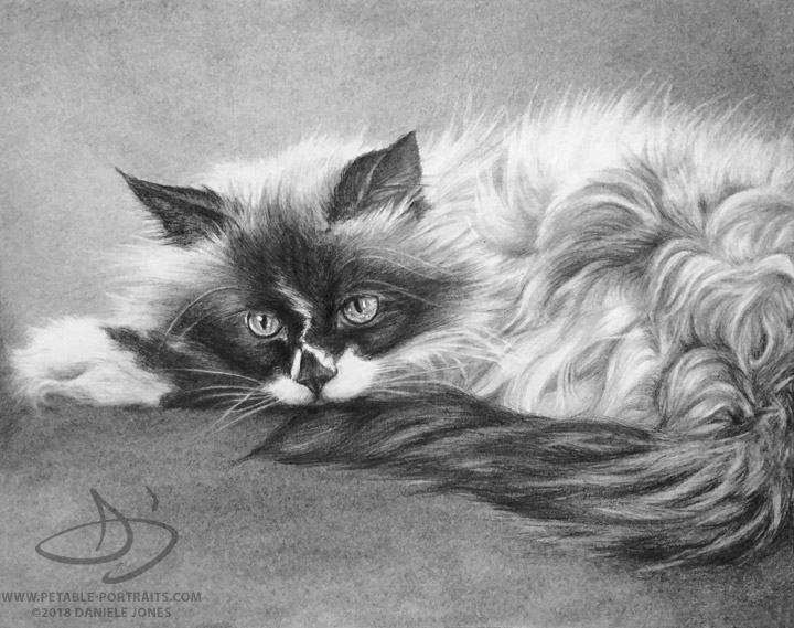 My goal with cat portraits, as with all my portraits, is to capture their sparkle – in their eyes and their personality. Sparkly eyes and silky soft fur can be depicted beautifully with pencil, colored pencil or in a painting. I don't follow formulas for my artwork. Each pet and composition is unique. Some of my clients know exactly what they want and some leave it completely up to me to create the artwork.