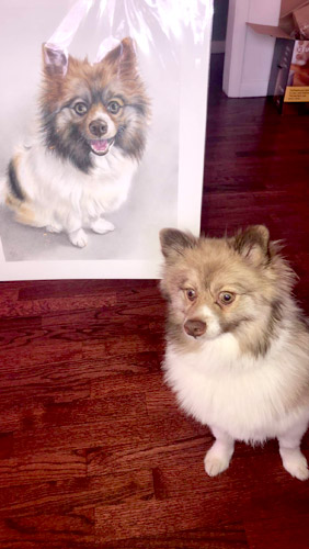 He just has the most wonderfully colored eyes and I knew that the portrait should bring those to life. Kerri, who commissioned the portrait, asked for a simple background. So we left out all the extra stuff in the photo and opted for a simple greyish shadow and background to highlight the whiteness of his fur.